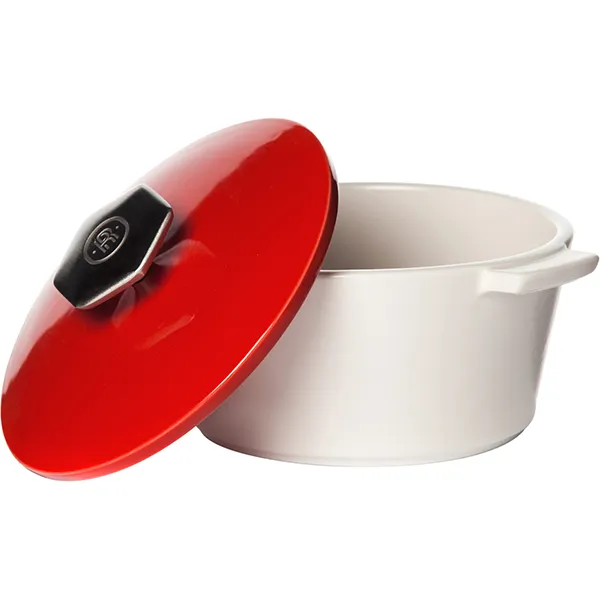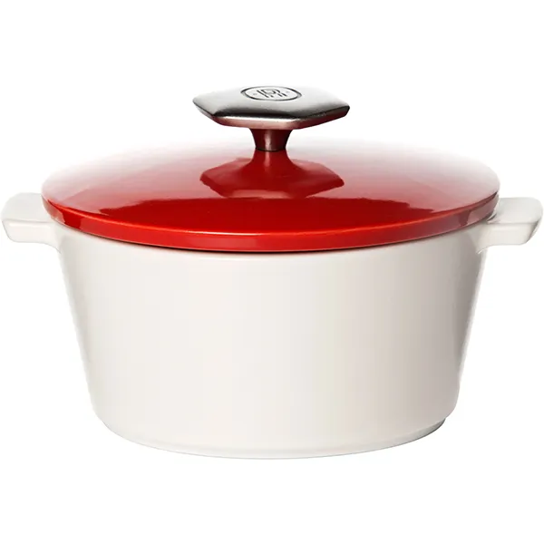 Кастрюля для запекания с крышкой керамика,сталь нерж. 0,5л D=13,6см белый,красный