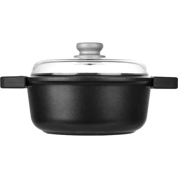 Кастрюля с крышкой(индукция) «Гранито» алюм.литой D=24,H=11см серый