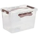 Контейнер создан в форме прямоугольника. По краям небольшие выступы – ручки, для удобства транспортировки. Корпус – полупрозрачный. Вмещает 5 литров. Крышка плотно прилегает к краям и создает герметичное пространство. Предотвращает проникновение воздуха, посторонних запахов, сохраняя свежесть продуктов.