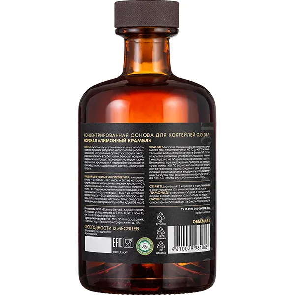 Во вкусе точно ощущается сладкий вкус печенья со сливочным кремом, при это он не приторный, а легкий и нежный, как и подобает настоящему лимонному крамблу. Украшает весь этот букет нот приятный и насыщенный аромат, который придает кордиалу неповторимость.