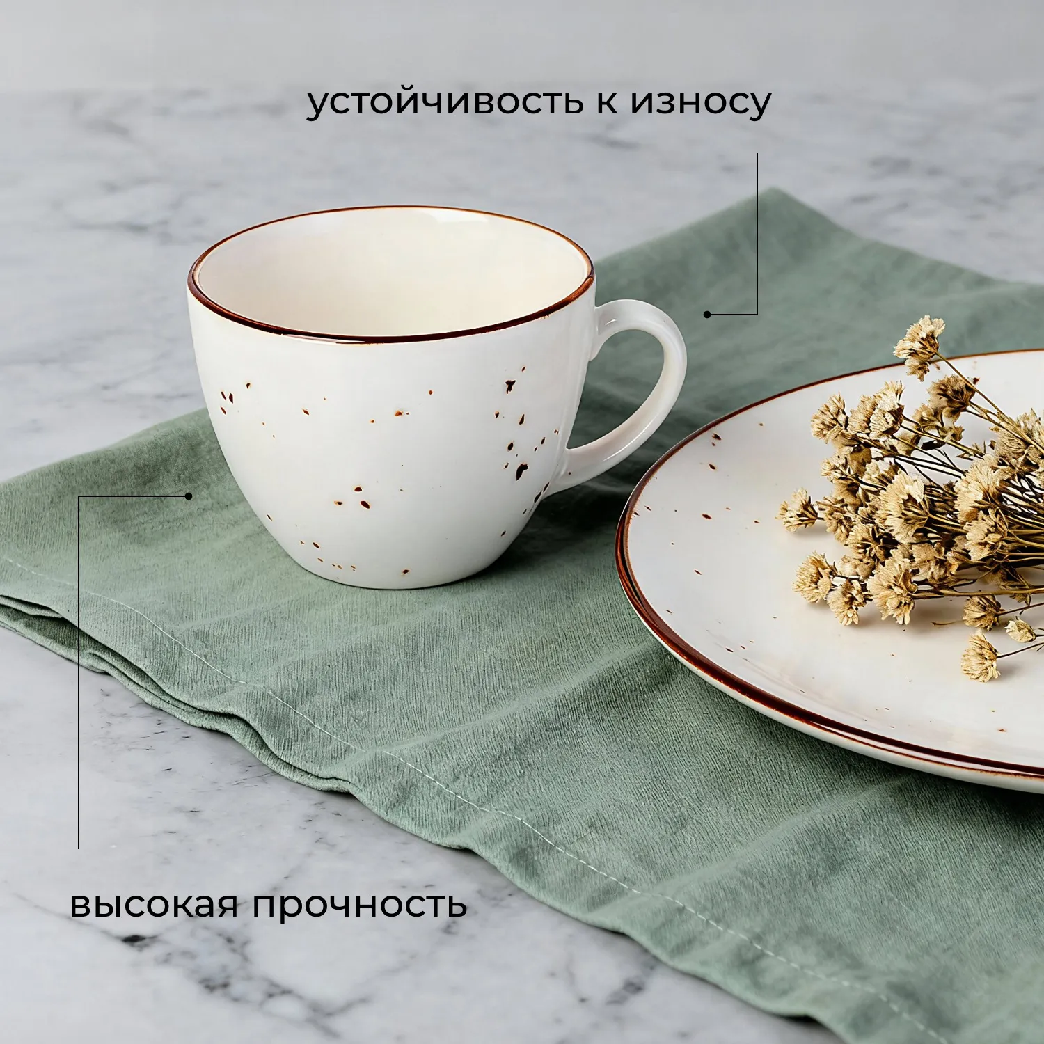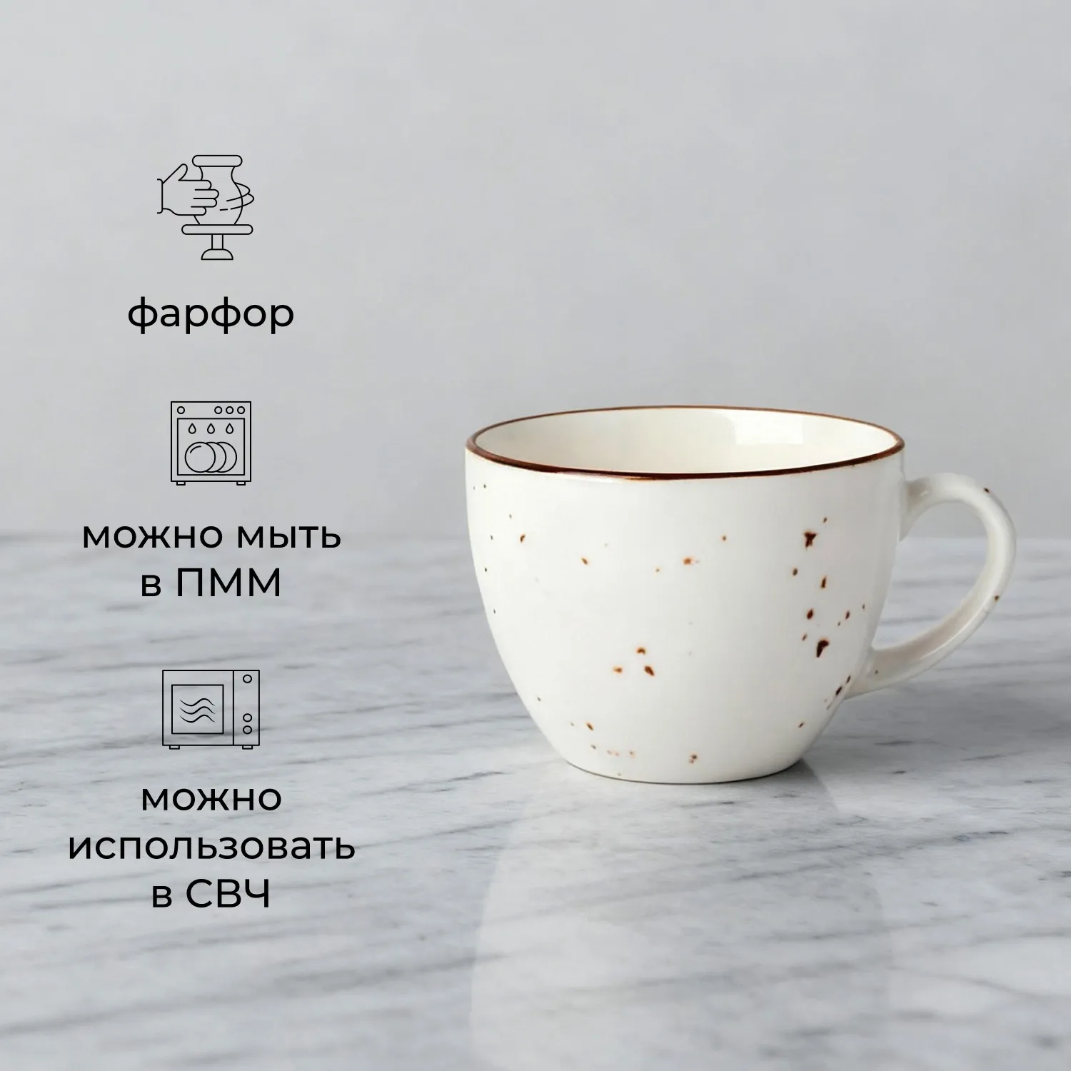 Технологии Hydro Zero™ Inside и HyGenie™ Inside делают ее практичным выбором: первая обеспечивает повышенную стойкость к сколам и механическим воздействиям, вторая – гарантирует антибактериальную защиту поверхности даже при интенсивном использовании. Плотный фарфор сохраняет температуру напитка, выдерживает многократное мытье в посудомойке, сохраняя безупречный внешний вид.