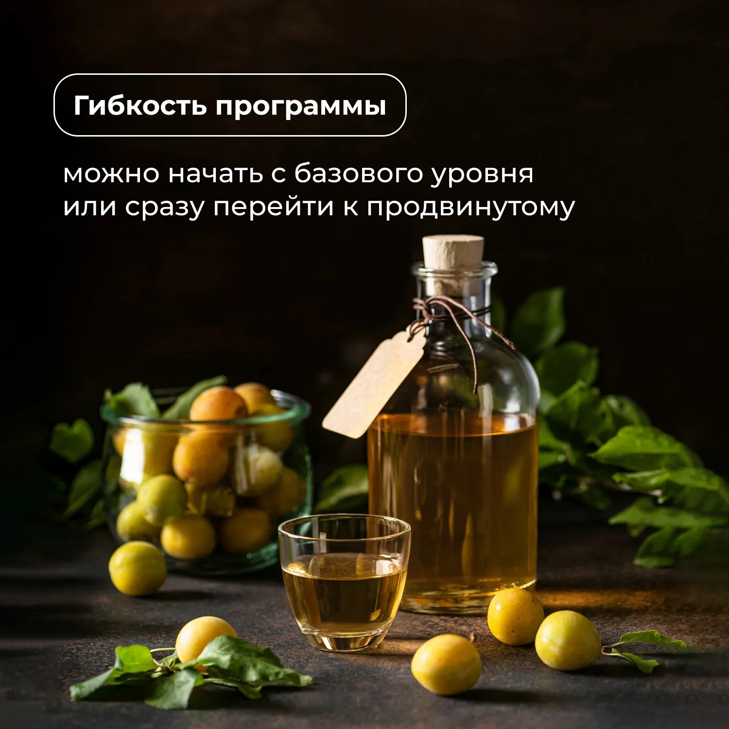 Блок 2. Современные настойки и технологии создания уникальных вкусов: Во второй день курс сосредоточен на создании современных настоек и формировании уникального вкусового опыта. Участники изучают теорию вкуса и баланса, подбор сочетаний ингредиентов и методы усиления аромата. Рассматривается концепция настойки: создание названия, позиционирование продукта и особенности его подачи.