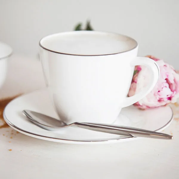 Чаша имеет классическую овальную форму с плавными и закругленными краями, что добавляет стильности. Ручка, сужающаяся к концу, создает элегантный силуэт. Оформление ручки подчеркивает минимализм и современность дизайна. Длина в 15 см создает удобство при удержании.