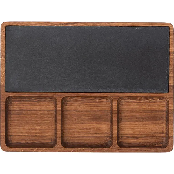 Менажница «Нова» 4 секции прямоугольная, вставка из натурального сланца дуб ,H=25,L=320,B=240мм