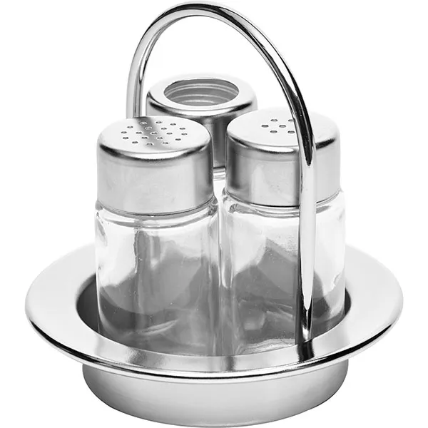Набор для специй соль, перец, стакан для зубочисток сталь нерж.,стекло D=13,H=13,L=13,B=11см серебри