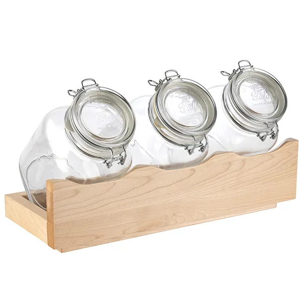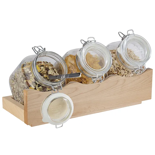 Набор емкостей фуршетных на подставке[3шт] стекло,дерево 2л ,H=13,5,L=43,B=17см прозр.,бежев.