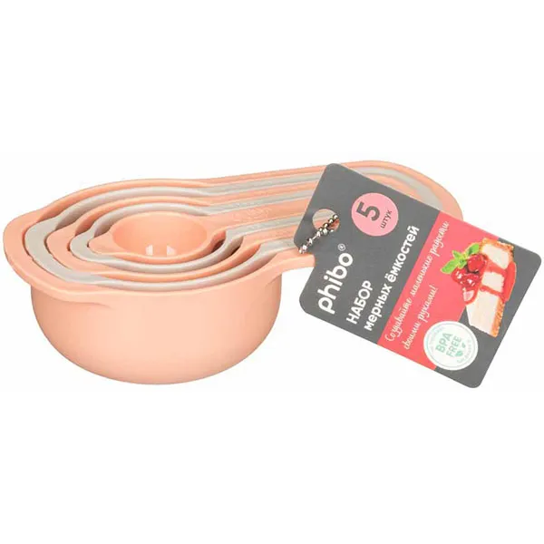 Набор емкостей мерных (7,5, 15, 60, 85, 125 мл)[5шт] полипроп. ,H=4,L=14,B=8см персик.,бежев.