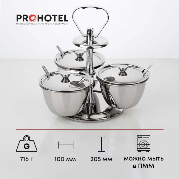 Набор емкостей фуршетных для соусов и специй (3 чаши) сталь нерж.,пластик D=10,H=20,5см металлич.