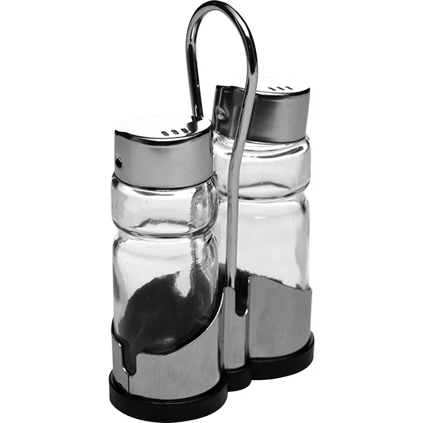 Набор для специй солонка и перечница на подставке стекло,сталь нерж. 35мл ,H=125,L=80,B=37мм серебри