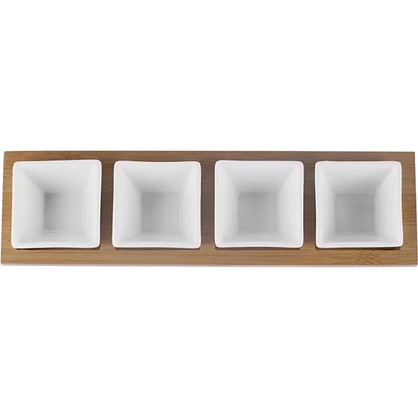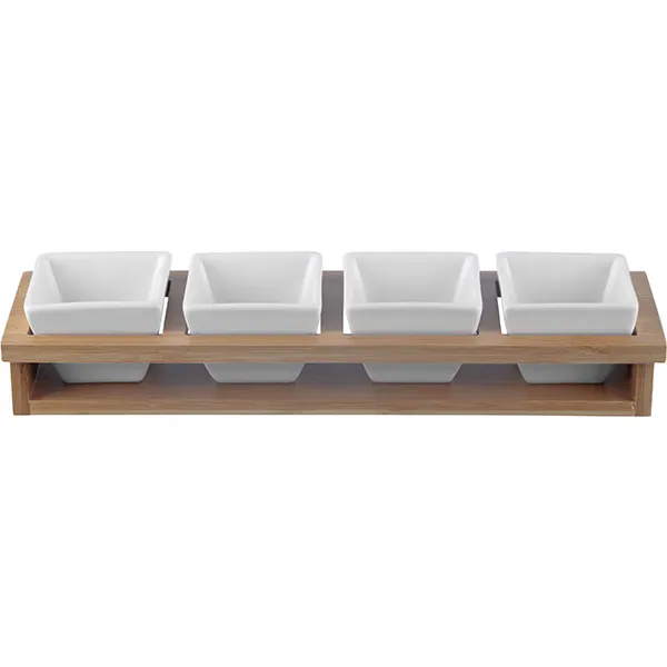 Набор соусников на подставке[4шт] бамбук,фарфор 75мл ,H=45,L=327,B=80мм