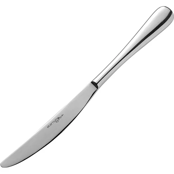 Десертный нож – элегантный прибор из серии «Аркада» бельгийского бренда Eternum. Дизайн эргономичен, характеризуется плавной, слегка изогнутой линией лезвия длиной 110 мм, переходящей в тонкую, но удобную ручку. Общая длина – 215 мм, ширина – 4 мм. На лезвии выполнена аккуратная гравировка с логотипом производителя, подчеркивающая премиальность изделия.