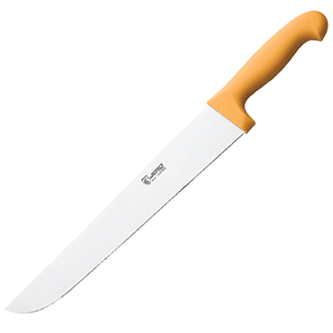Нож для нарезки мяса сталь,пластик ,L=45/35,B=5см желт.,металлич.