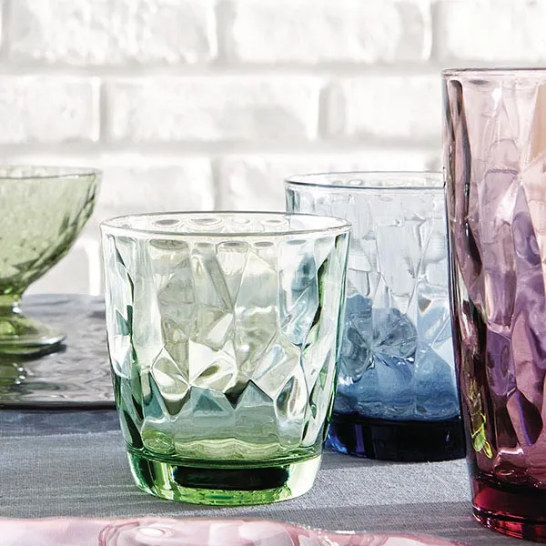 Производитель из Италии Bormioli Rocco создает из стекла удивительные бокалы. Он превращает обычный стакан в настоящий бриллиант, который не уступает украшениям от Эпл Даймонд. Олд фэшн серии Diamond изготовлен из прозрачного стекла, имеет синий цвет и необычную огранку, которая обеспечивает блеск и переливы напиткам. Производитель использует прочный и устойчивый к царапинам материал, который можно отправлять в посудомоечную машину. При высоте 103 мм и диаметре 91 мм объем бокала 385 мм. В серии «Даймонд» есть такие же красивые прозрачные стаканы фиолетового цвета и других оттенков, бокалы Diamond cristal для леди, чтобы собрать оригинальный набор. Их и барное оборудование от Pasabahce, товары для приготовления напитков можно заказать в нашем магазине.