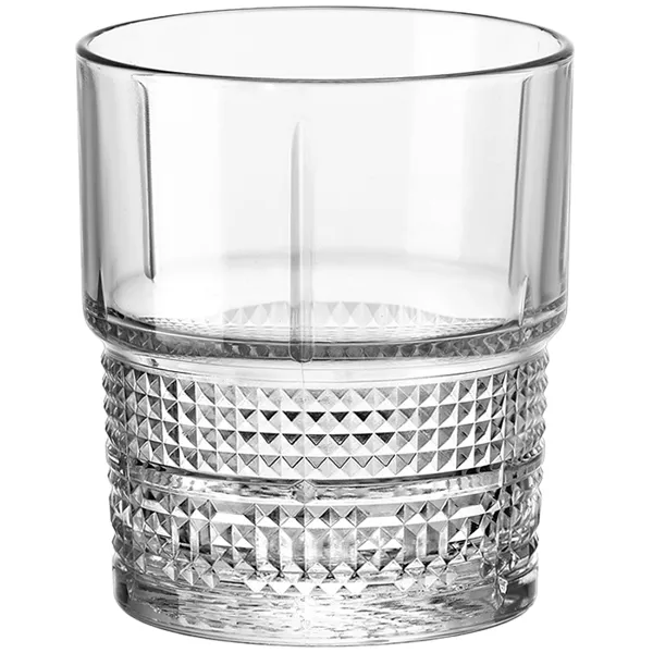 Олд фэшн «Новеченто» бренда Bormioli Rocco – это изысканный союз ретро-эстетики и современной строгости. Верхняя часть – гладкое прозрачное стекло. Нижняя половина украшена выразительным геометрическим рельефом в виде миниатюрных пирамид. Такой декор добавляет глубину и обеспечивает уверенный захват – практичность, заключенная в красоте. Стакан смотрится солидно как на барной стойке, так и в изысканной сервировке.
