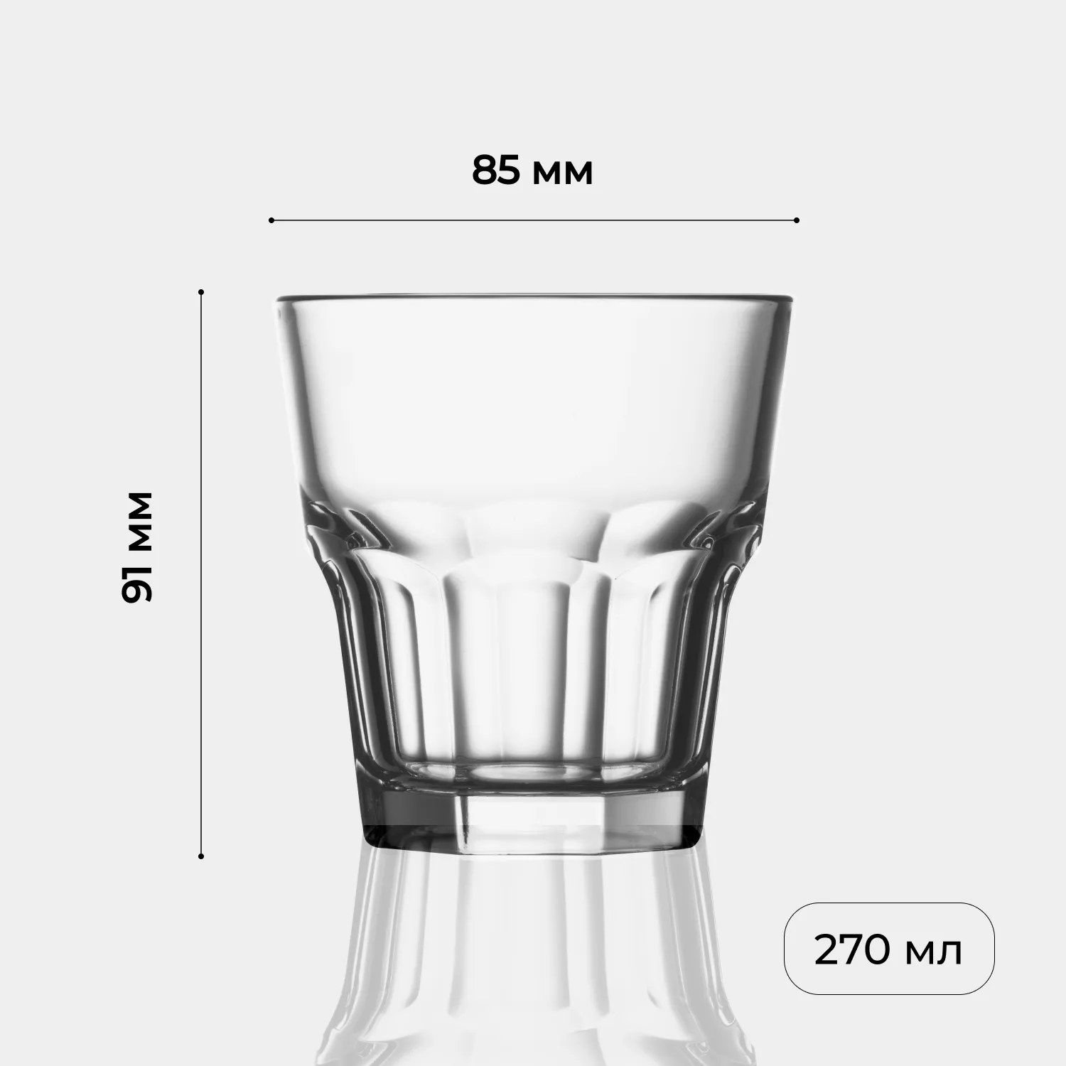 Олд Фэшн «Касабланка» – классический стакан для подачи алкогольных напитков и коктейлей с минимальным количеством компонентов. У него стандартная форма со средней высотой стенок. Объем посуды 270 мл – это оптимальный размер для такого типа бокалов.