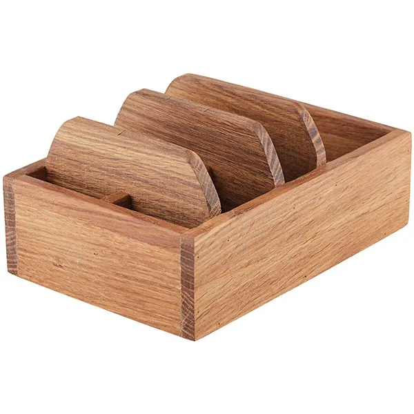 Подставка для набора для специй и салфеток 5 отделений с лого дуб ,H=65,L=210,B=150мм