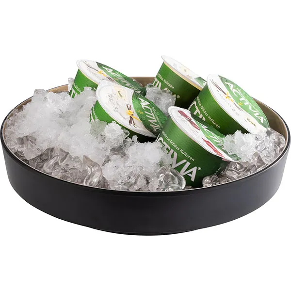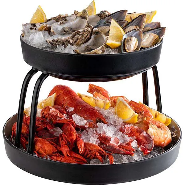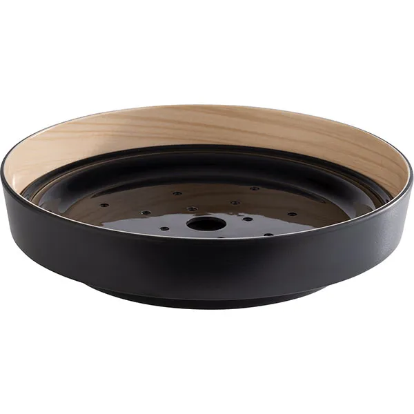 Поднос фуршетный «Фрида» с каплесборником пластик D=255,H=60мм черный,бежев.