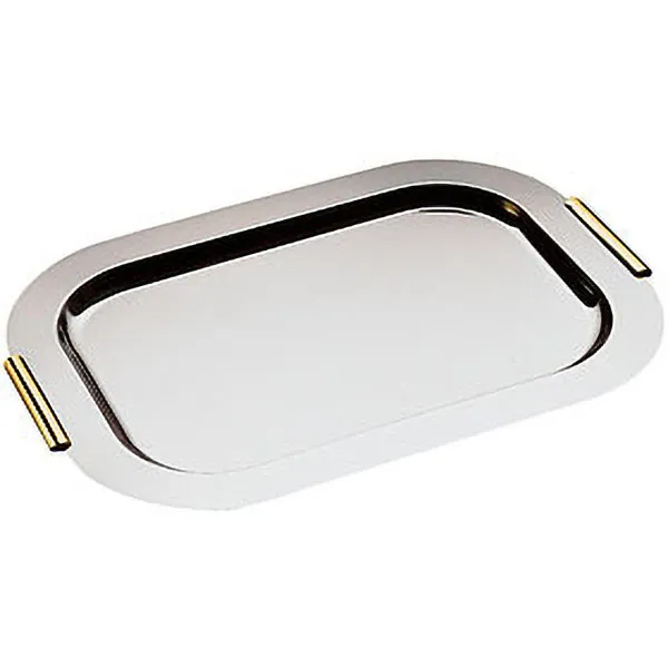 Поднос с золочеными ручками сталь нерж. ,H=18,L=440,B=310мм металлич.,золотой
