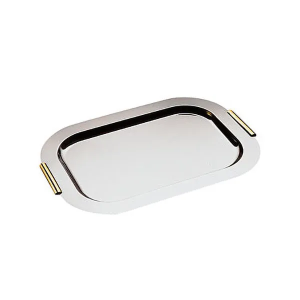 Поднос с золочеными ручками сталь нерж. ,H=18,L=700,B=480мм металлич.,золотой