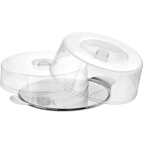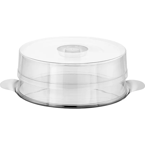 Подставка для торта с двумя крышками (h=7/11см) сталь нерж.,полистирол D=30см металлич.,прозр.