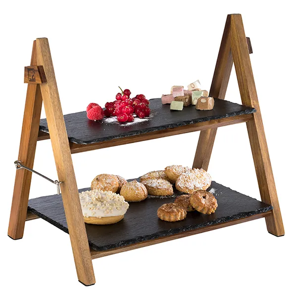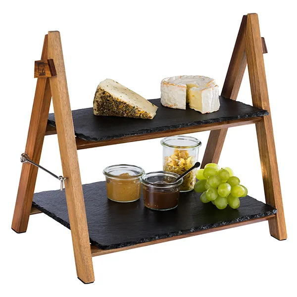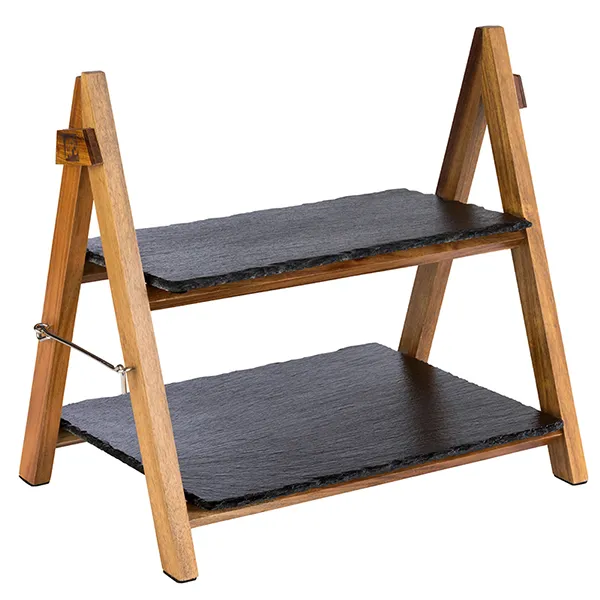 Этажерка 2 яруса акация,сланец натур. ,H=36,5,L=34,B=26,5см коричнев.,черный