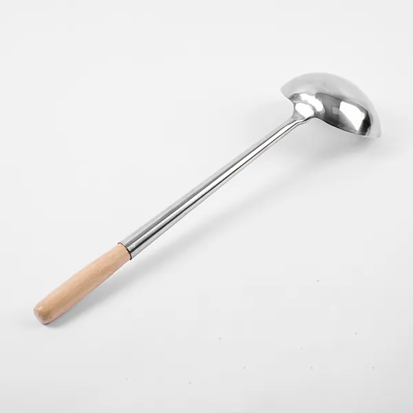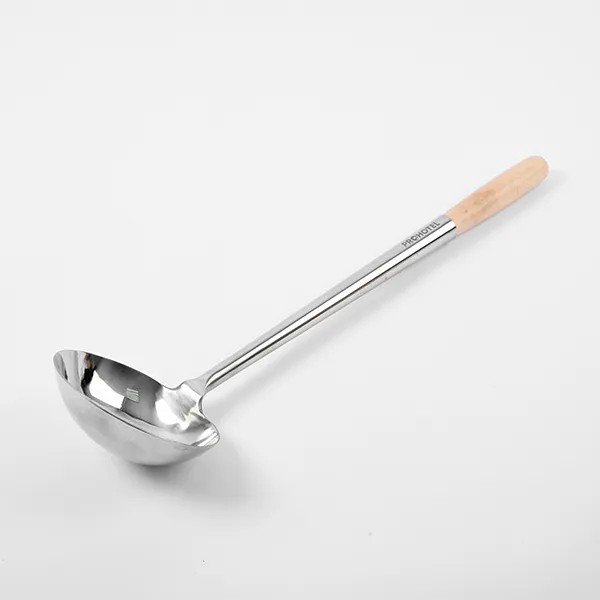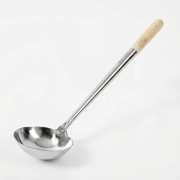 Половник с деревянной ручкой сталь нерж.,дерево 270мл D=125,H=45,L=490мм металлич.,деревян.