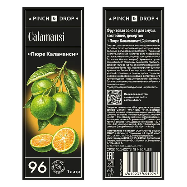 Пюре «Каламанси» фруктовое Pinch&Drop пластик 1л D=7,H=26см