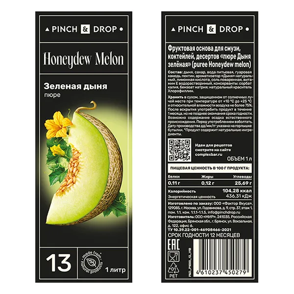 Пюре «Зеленая дыня» фруктовое Pinch&Drop пластик 1л D=7,H=26см
