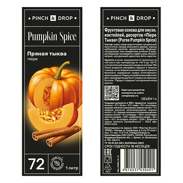 Пюре «Пряная тыква» фруктовое Pinch&Drop пластик 1л D=7,H=26см