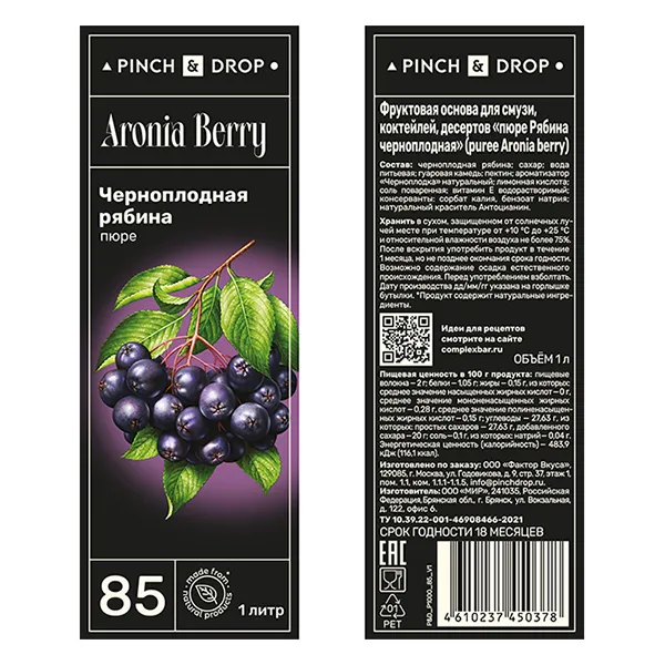 Пюре «Черноплодная рябина» фруктовое Pinch&Drop пластик 1л D=7,H=26см