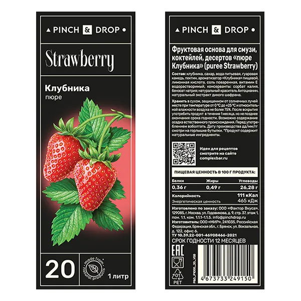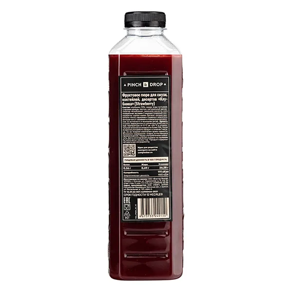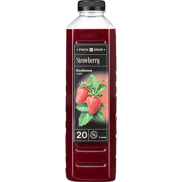 Бренд Pinch&Drop выпускает большой ассортимент фруктовых пюре для приготовления напитков и десертов. Один из самых популярных вкусов – клубника. Это пюре поставляется в бутылках из пластика объемом 1 литр. В такой упаковке удобнее доставлять, хранить и использовать продукт, чем в стекле, ведь пластиковая бутылка легкая, она не бьется. Продукт имеет густую консистенцию сиропа и насыщенный вкус ягод, который не перебивается сладостью сахара. У него красивый красный цвет и не слишком высокая калорийность. В нашем магазине большой выбор фруктовых топпингов со вкусами банана, яблок, экзотических фруктов, шоколада и товаров для их подачи.