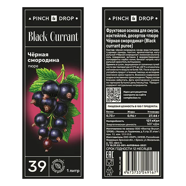 Пюре «Черная Смородина» фруктовое Pinch&Drop пластик 1л D=7,H=26см