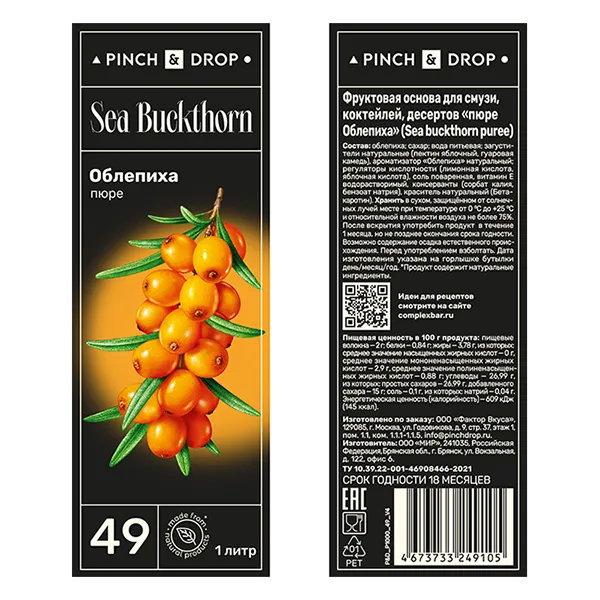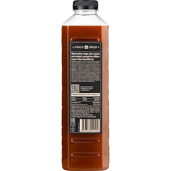 Фруктовое пюре со вкусом «Облепиха» – находка для любителей вкусных и полезных добавок. Сделано из свежих ягод облепихи, которые содержат в себе большое количество витаминов и имеет сладкий ягодный аромат. Готовый продукт содержит небольшое количество сахара. Пюре поставляется в пластиковой таре, которую удобно хранить в холодильнике или на полке. У бренда есть продукция с другими вкусами, поэтому каждый может выбрать пюре по своим предпочтениям. Срок хранения – один месяц с момента вскрытия. Открытый продукт хранить при температуре от 0 до +25 градусов. Полный состав и все условия хранения указаны на упаковке. Продукт производится в России.