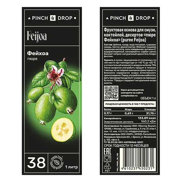 Фруктовое пюре из фейхоа от российского производителя Pinch&Drop – это тропическая свежесть в каждой капле. Консистенция – однородная, с легкой густотой, идеально подходящей для смешивания. Пюре обладает насыщенным, сбалансированным вкусом и ярким ароматом, в котором сочетаются сладкие, терпкие и освежающие нотки. Состав обогащен природными витаминами и антиоксидантами, что делает продукт не только вкусным, но и полезным дополнением к рациону.