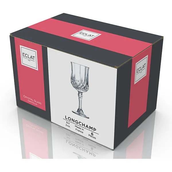 Коллекция хрустальных изделий бренда «Eclat» давно завоевала любовь многих ценителей элегантной дизайнерской посуды. Рюмки серии «Longchamp» сделаны из искусственного хрусталя и имеют красивые переливы при попадании солнечных лучей на стенки. Если соприкоснуться двумя стопками, можно услышать звонкий перелив. Посуду можно мыть в посудомоечной машине. Объем 60 мл.