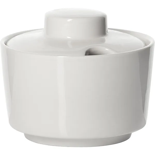 Сахарница «Кунстверк» выполнена из белого фарфора в лаконичном дизайне с гладкой глянцевой поверхностью. Крышка с небольшим отверстием и округлой ручкой добавляет изделию функциональности и элегантности. Она плотно прилегает к корпусу, защищая содержимое.