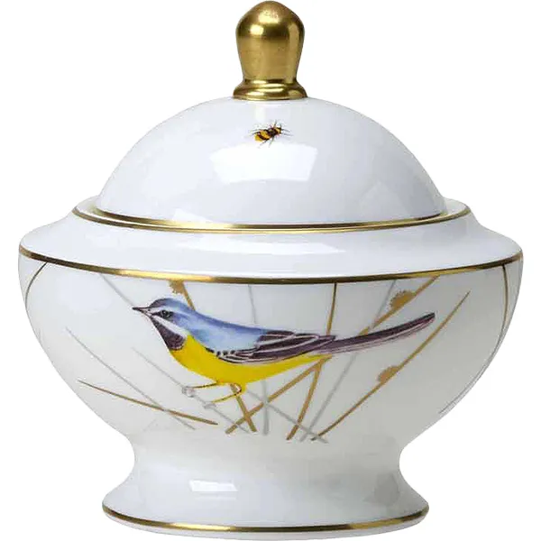 Сахарница «Рид» с крышкой кост.фарф. 250мл ,H=11,5см белый,золотой