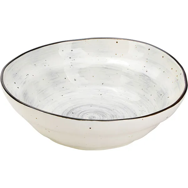 Салатник «Пастораль» от компании «Кунстверк» создаст элегантный акцент в сервировке стола. Среди однотонной посуды он выделиться за счет дизайна. Поверхность имеет серый цвет с легкими черными вкраплениями. Круглая форма и слегка волнистый край добавляют изделию элегантности и привлекательности.