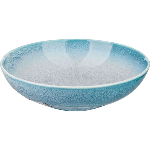 Глянцевая глазурь не царапается от столовых приборов и не тускнеет со временем. Посуда имеет необычный дизайн – россыпь бирюзовых и белых брызг. Благодаря особой технологии глазуровки, рисунок получился объемным и напоминает красивое голубое озеро. Объем – 1 л, диаметр – 20 см.