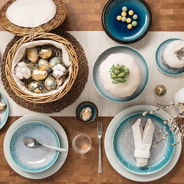 Бирюзовый цвет хорошо сочетается с белой и черной посудой, и тарелка подойдет как для классического, так и для дизайнерского стиля сервировки. В интернет-магазине представлены и другие товары бренда Kunstwerk – при желании можно собрать яркий набор столовой посуды.