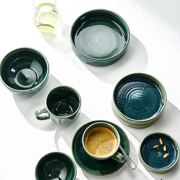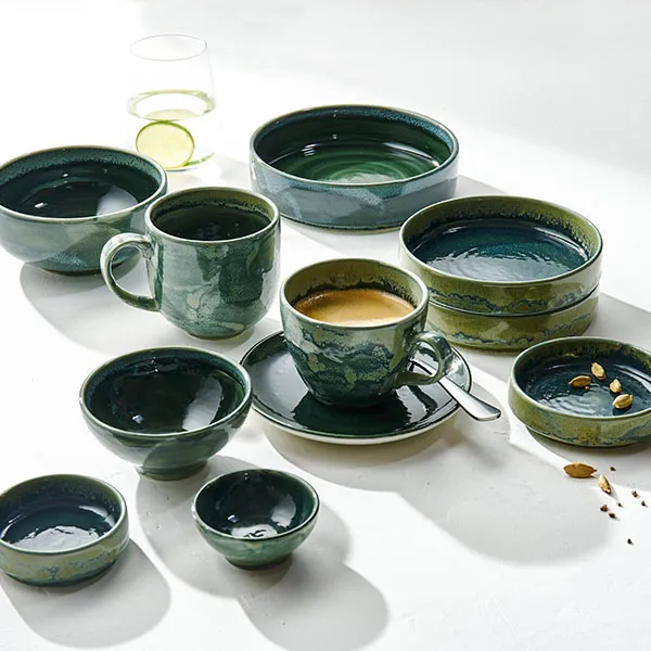 Салатник «Аврора Везувиус Бернт» фарфор 0,5143л D=140,H=65мм бежев.,зелен.