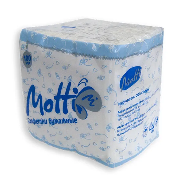 Салфетки бумажные однослойные 24*24см[100шт] белый