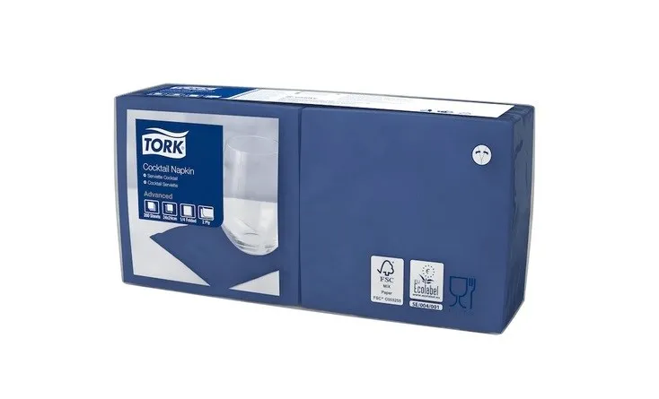 Салфетки бумажные Tork 24 синие, 24*24, 2 слоя (200листов) бумага ,L=24,B=24мм синий