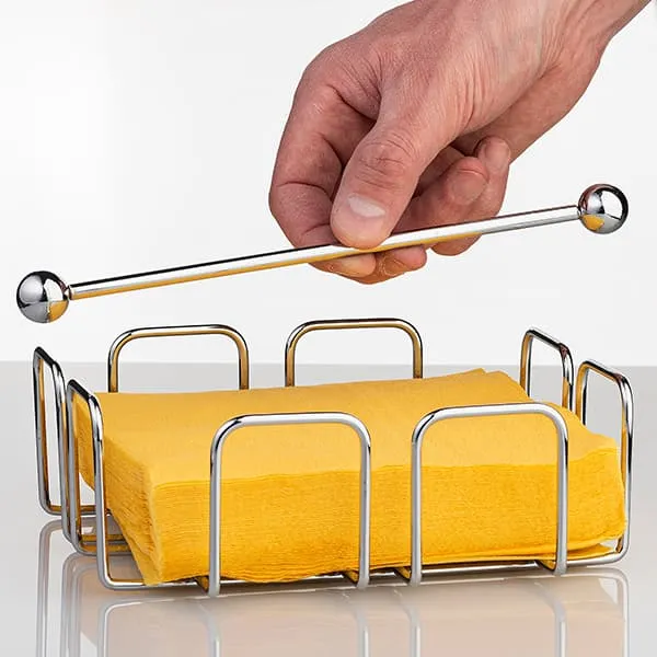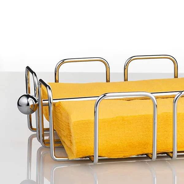 Оснащена держателями для салфеток. Металлические прутья пересекаются, обеспечивая устойчивость конструкции.