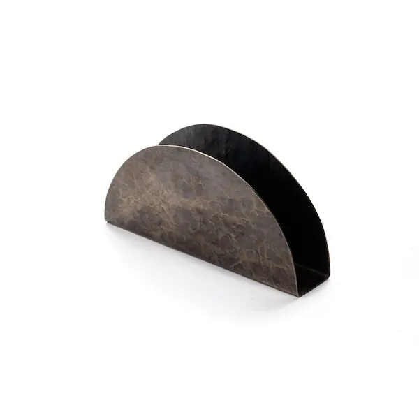 Салфетница «Такт» полукруглая, с чеканкой и патиной мельхиор ,H=8,L=15см серебрист.