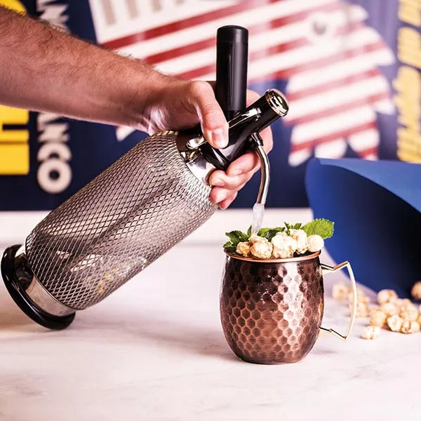 Сифон бренда iSi идеально подходит для домашних кухонь, профессиональных баров и ресторанов, где важно быстро и качественно приготовить газированные напитки. Для работы сифона используются специальные баллончики с углекислым газом, которые легко заменяются, обеспечивая бесперебойное приготовление газированных напитков.
