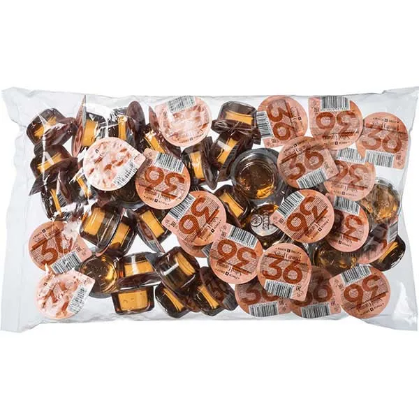 Товар представлен в пакетиках в размере 50 штук объемом по 15 мл для порционной подачи к напиткам или десертам.