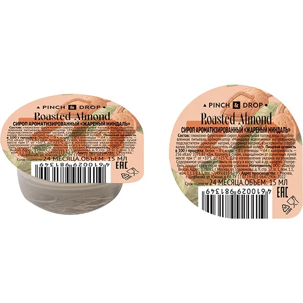 Сироп «Миндаль» в порционных упаковках представлен для удобной дозировки ингредиента, для подачи к коктейлям и кофе в ресторанах и кафе.