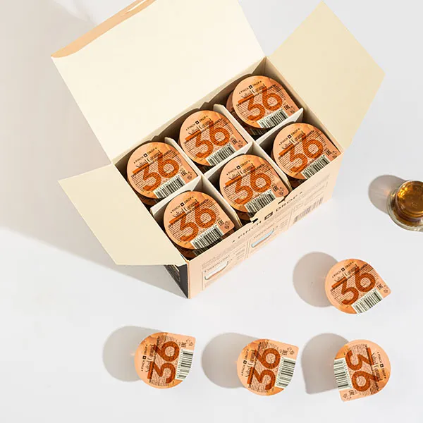Производитель предлагает небольшие по объему упаковки на 15 мл в размере 30 штук. Картонные пакетики удобны для быстрого использования в барах и кафе.