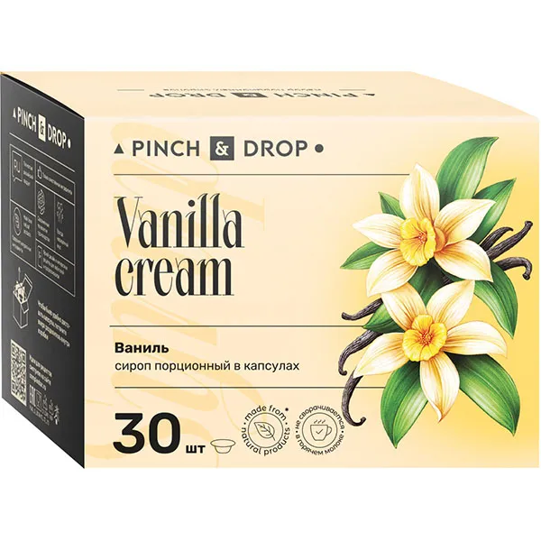 Производитель использует только натуральные компоненты. Производство ведется в соответствии с отечественными стандартами. В итоге клиенты получают великолепный товар с насыщенным вкусом и потрясающим ароматом. Pinch&Drop работает для того, чтобы ваши любимые напитки, десерты и кофе раскрывались новыми вкусами.
